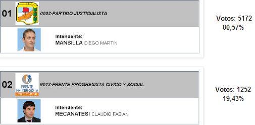 El compañero Diego Mansilla obtuvo el 75% de los votos, aplastando al candidato del FAP Claudio Recanatesi que llegó a un 18%. La noticia es que Diego es de LA CÁMPORA...