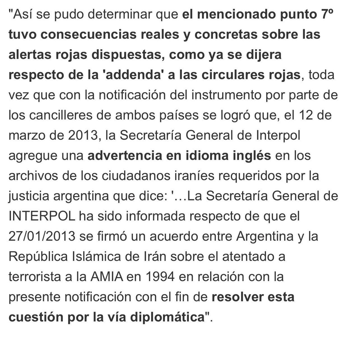 1 respuesta59 retweets43 Me gusta - Y te cuentan que el banner dice: '…La Secretaría General de @INTERPOL_HQ ha sido informada respecto de que el 27/01/2013 se firmó un acuerdo entre Argentina y la República Islámica de Irán sobre el atentado a terrorista a la AMIA en 1994...1 respuesta57 retweets37 Me gusta