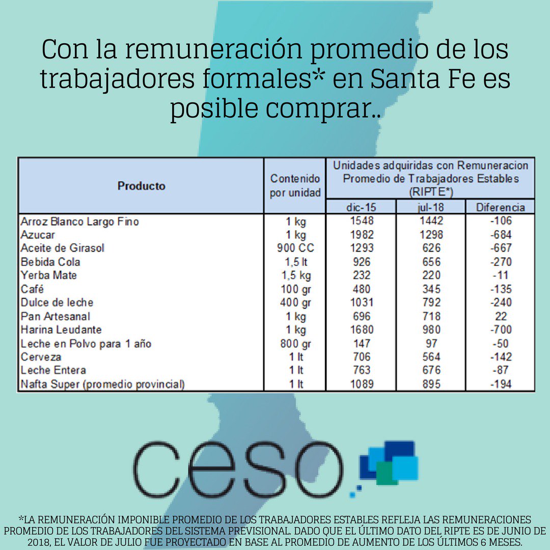 #InfografíaCESO #Agosto2018 "Con la remuneración promedio de los trabajadores formales en #SantaFees posible comprar..."Infografía completa en: [