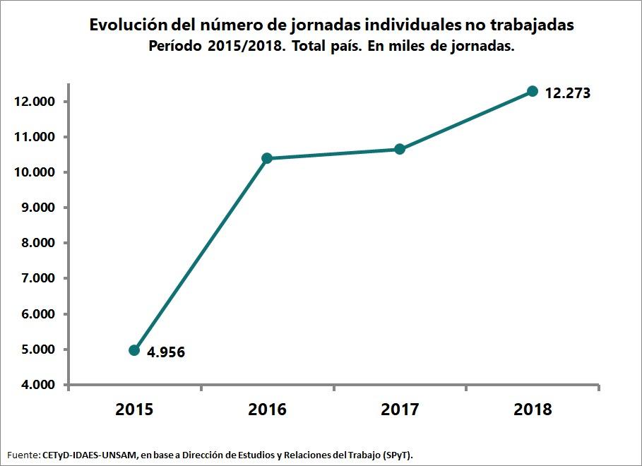 Como resultado, el número de jornadas individuales no trabajadas en el año 2018 estuvo cerca de triplicar al del año 2015.