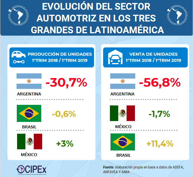 Evolución del sector automotriz en #Argentina, #Brasil y #México, según datos de @Adefa_Prensa , #Anfavea y @AmiaMexico.