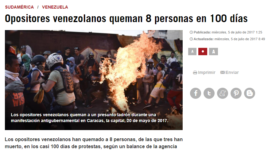 Es curioso ver cómo si alguien tira una piedra a la policía en Euskadi, Catalunya o Madrid, es poco menos que un terrorista, y cuando alguien quema vivo a un policía en Venezuela o Ucrania, es un activista por la libertad.