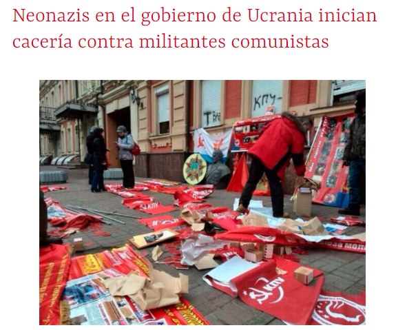 Hay imágenes al alcance de cualquiera de una mujer embarazada estrangulada por los nazis con un cable de teléfono mientras el resto de manifestantes gritaban “muerte a los rusos”.