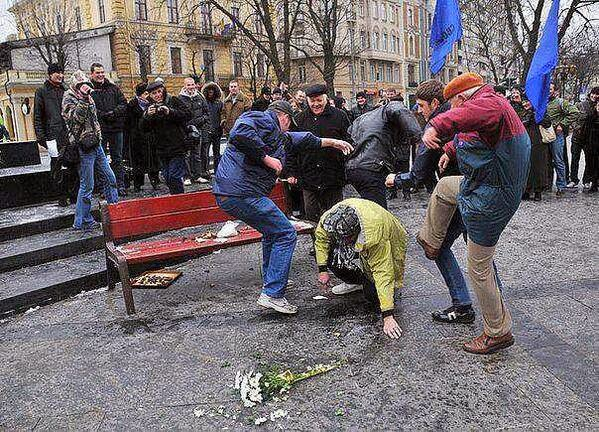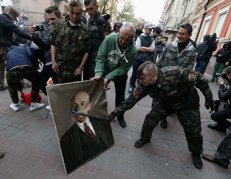 Sin ir más lejos, hay muchas imágenes de sucesos distintos, en los que grupos de jóvenes y no tan jóvenes patean sin piedad la cabeza de ancianos que llevan flores a las estatuas de Lenin.
