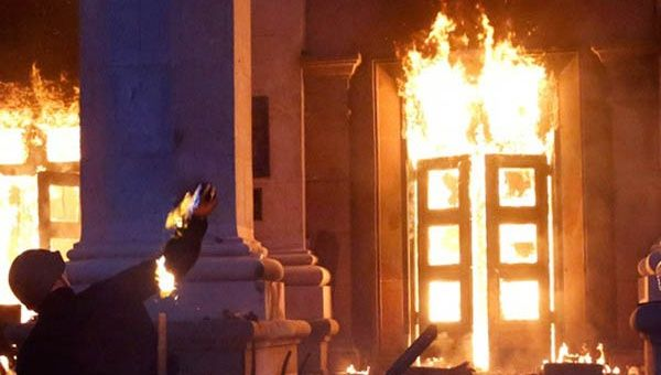 Cerca del recorrido de esa manifestación se había establecido en la puerta de la Casa de los Sindicatos, un campamento de manifestantes anti-Maidan, de ascendencia rusa.