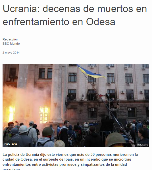 Los mismos medios que os están diciendo lo malos que son los rusos y que debéis salir a la calle a protestar contra esta guerra a día de hoy, son los mismos que tras esos hechos publicaban los siguientes titulares : “MAS DE 50 MUERTOS EN CHOQUES CON LOS SEPARATISTAS PRORRUSOS”